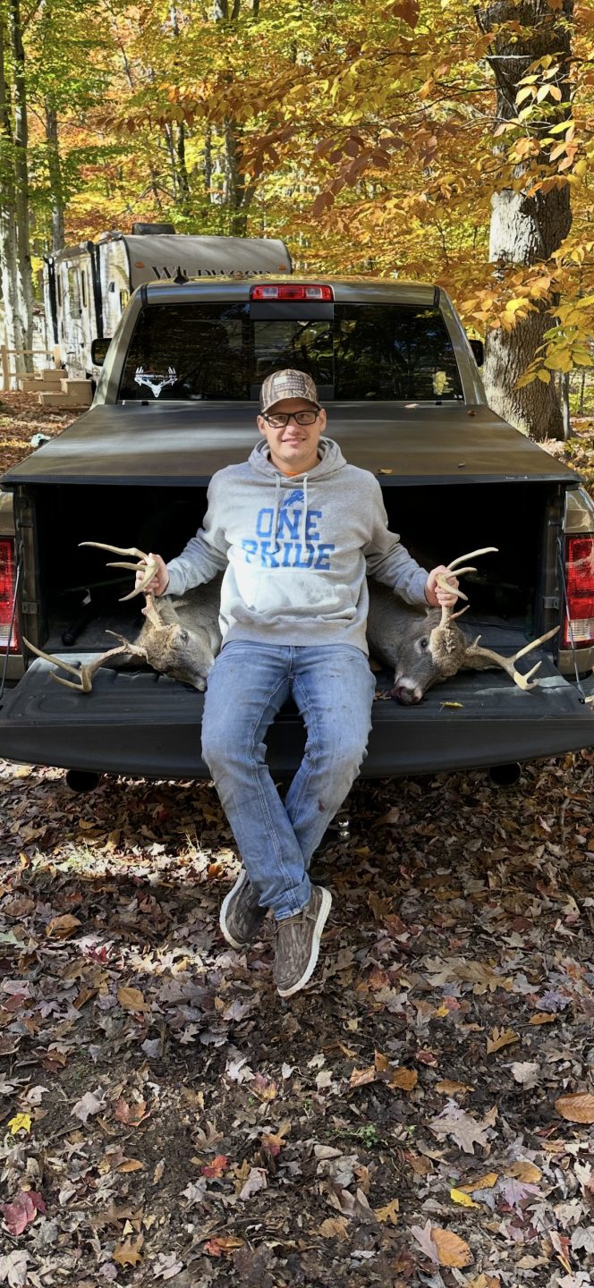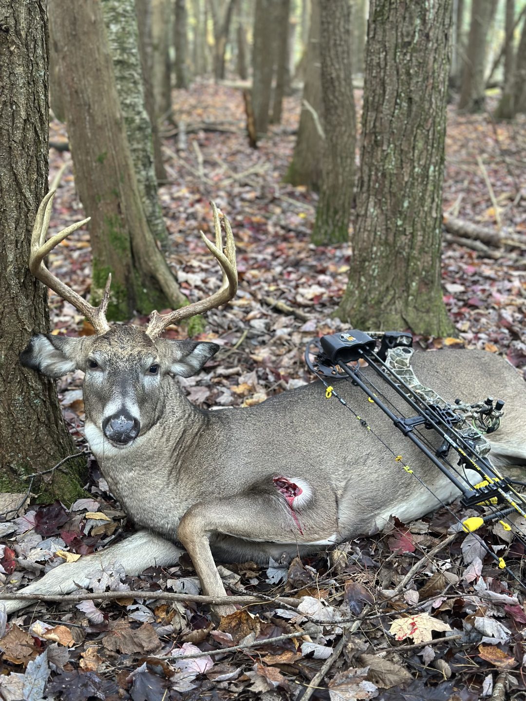 Well my dream in the deer woods finally came true. I have always dreamt of shooting 2 nice bucks back to back in one hunt. This morning I did just that! Right at daylight this morning the 8 point came in trailing a doe. I was able to get a shot in him and he piled up after 50 yards. I was waiting it out a little longer and turn around and the bigger one was standing there sniffing my dead buck. Grabbed my bow and let the arrow fly. He ran 50 yards and piled up.